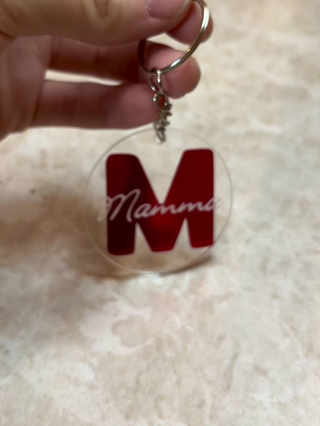 Disse nøkkelringene kan du bestemme hvilket navn eller tekst du vil ha selv, bakgrunnen er første bokstaven i navnet (med mindre det er noen andre ønsker).
